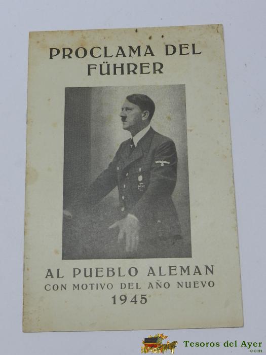 PROCLAMA DEL FUHRER AL PUEBLO ALEMáN CON MOTIVO DEL AñO NUEVO, 1945. HITLER, EN BUEN ESTADO DE CONSERVACIóN. MEDIDAS: 14 CM X 21 CM. CON 8 PAG.