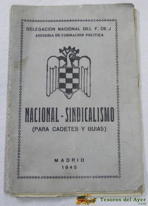 NACIONAL SINDICALISMO PARA CADETES Y GUIAS- 1945 - FOLLETO GUIA DE FALANGE - DELEGACION NACIONAL DEL F. DE J. - AÑO 1945 - CON 35 PAGS. - MIDE 15,5 X 11 CMS.
