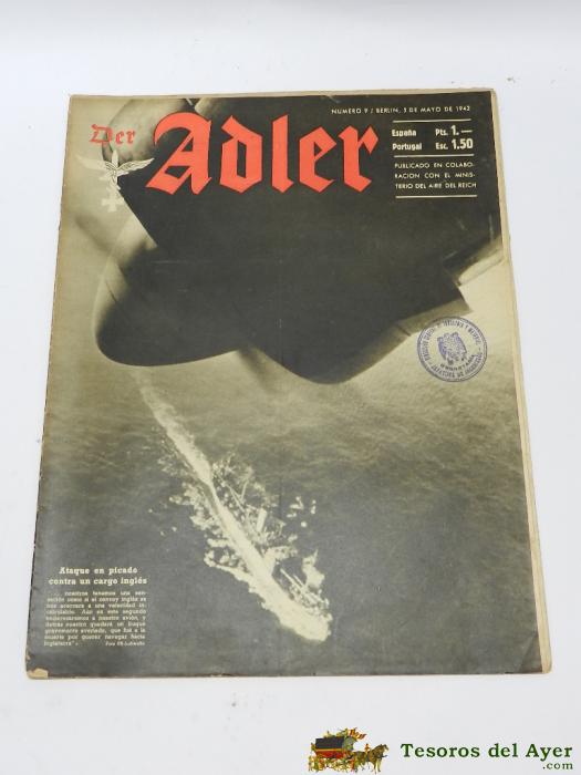 REVISTA, DER ADLER, 5 DE MAYO 1942, BERLIN, II GUERRA MUNDIAL, AVIACION, PROPAGANDA ALEMANA, MIDE 32,5 X 25 CMS. 32 PAG. APROX. TIENE ALGUN SELLO DE SU ANTERIOR PROPIETARIO.