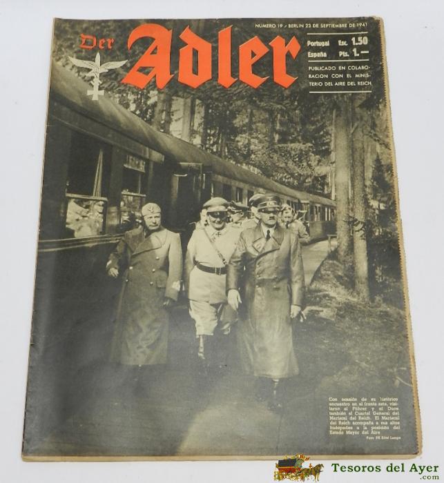 REVISTA, DER ADLER, 23 DE SEPTIEMBRE 1941, BERLIN, II GUERRA MUNDIAL, HITLER, MUSOLINI Y GORING EN LA PORTADA, AVIACION, PROPAGANDA ALEMANA, MIDE 32,5 X 25 CMS. 32 PAG. APROX.