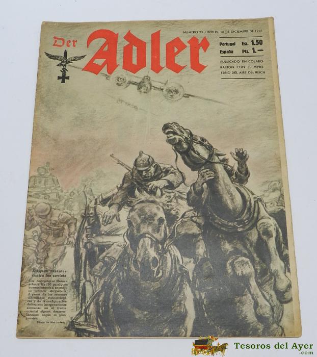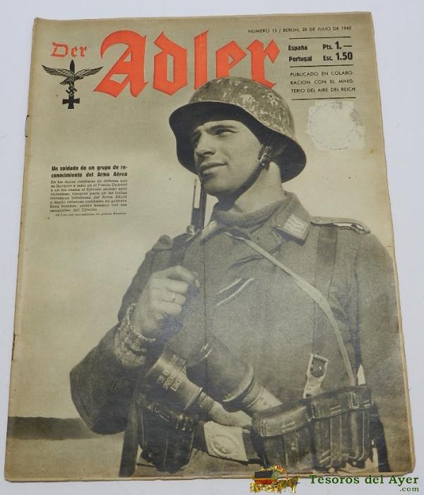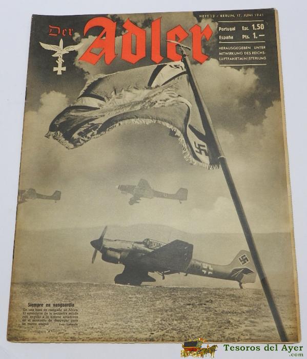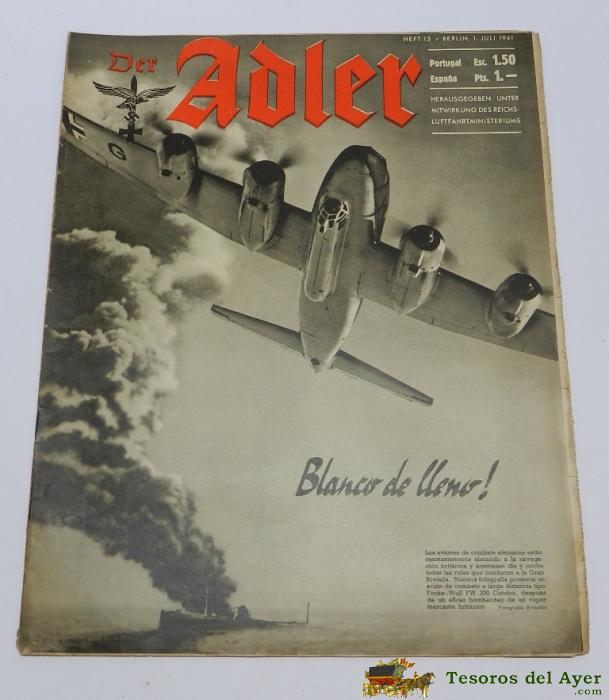 REVISTA, DER ADLER, 1 DE JULIO 1941, BERLIN, II GUERRA MUNDIAL, AVIACION, PROPAGANDA ALEMANA, MIDE 32,5 X 25 CMS. 32 PAG. APROX.