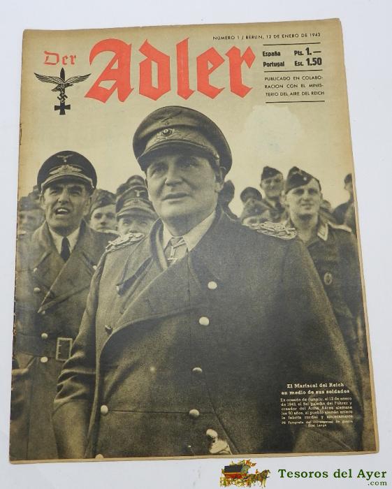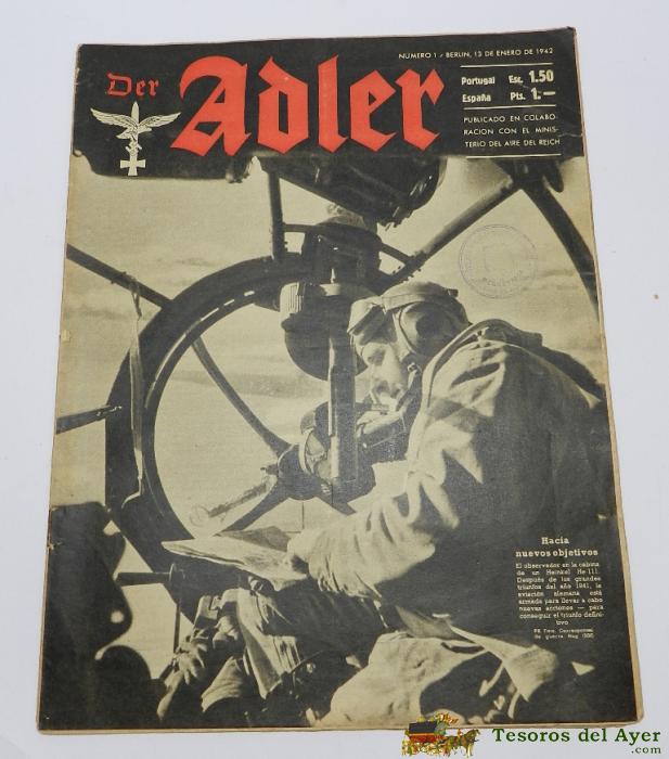 ANTIGUA REVISTA ADLER Nº 1 - BERLIN 13 ENERO 1942 - TIENE 30 PAGINAS LLENAS DE FOTOGRAFIAS - EN ESPAÑOL - MIDE 33 X 25,5 CMS. TIENE SELLO DE SU ANTERIOR PROPIETARIO.