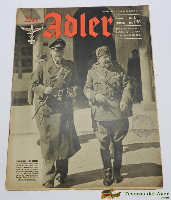 ANTIGUA REVISTA ADLER Nº 13 - BERLIN 30 DE JUNIO 1942 - TIENE 30 PAGINAS LLENAS DE FOTOGRAFIAS - EN ESPAÑOL - MIDE 33 X 25,5 CMS. TIENE SELLO DE SU ANTERIOR PROPIETARIO.