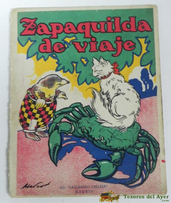 ANTIGUO CUENTO ZAPAQUILDA DE VIAJE, ED. SATURNINO CALLEJA, MADRID, Añ 1924, ILUSTRACIONES MARCO, SERIE CUENTO EN COLORES, 4º SERIE, CONTRAPORTADA PINTADA CON ROTULADOR, MIDE 27,5 X 21,5 CMS.