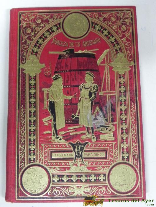 ANTGIUO LIBRO NOBLEZA DE UN ARTESANO, CUENTOS. MADRID. EDITORIAL SATURNINO CALLEJA, BIBLIOTECA ILUSTRADA PARA NIñOS XIX. CIRCA 1900. TELA DE EDITOR ORNAMENTADA - BUEN ESTADO