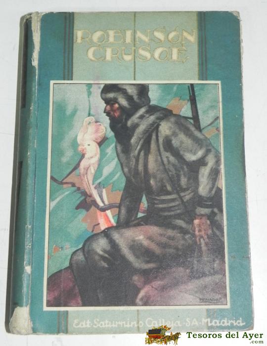 ANTIGUO LIBRO DE ROBINSON CRUSOE, ED. SATURNINO CALLEJA, BIBLIOTECA PERLA, PRIMERA SERIE III, 285 PAG. ILUSTRACIONES DE PICOLO, LOMO UN POCO ROZADO.