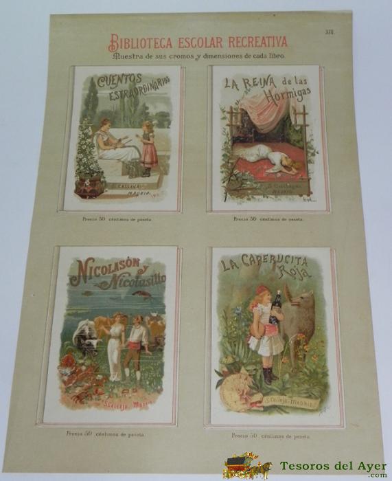 ANTIGUO CARTEL CON PUBLICIDAD DE LOS CUENTOS DE CALLEJA, BIBLIOTECA ESCOLAR RECREATIVA - COMPLEAMENTE ANTIGUO Y ORIGINAL - MUESTRA DE SUS CROMOS Y DIMENSIONES DE CADA LIBRO, POR LA PARTE TRASERA VA TAMBIEN IMPRESO, SEGURAMENTE SE PONIAN EN LAS ANTIGUAS LI