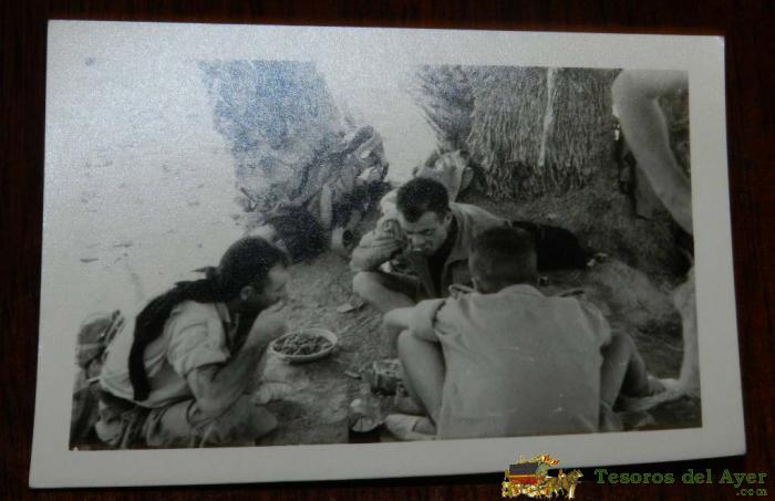 ANTIGUA FOTO POSTAL, SAHARA, LEGION ESPAñOLA, COMIENDO A LA SOMBRA DE UNA PALMERA, NO CIRCULADA