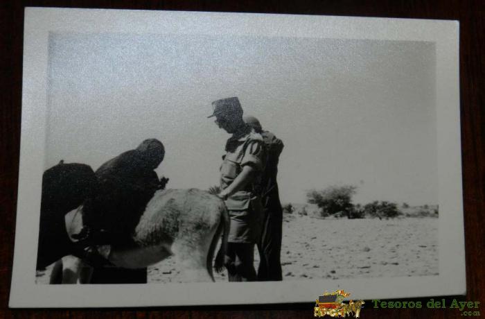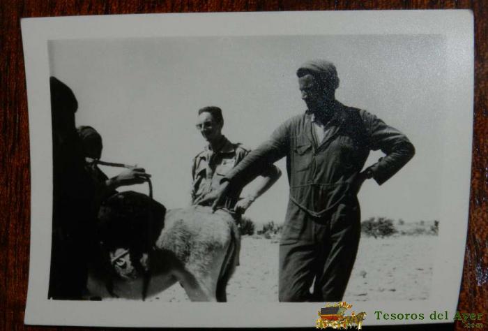 ANTIGUA FOTO POSTAL, SAHARA, LEGIONARIO ESPAñOL CON UNOS SAHARAUIS CARGANDO UN MULO, NO CIRCULADA