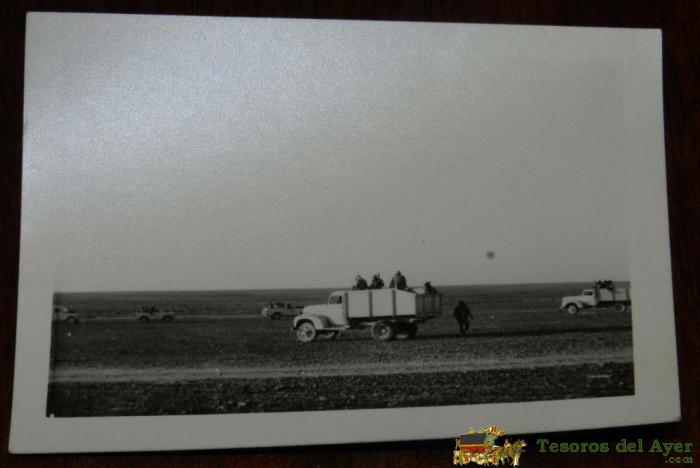 ANTIGUA FOTO POSTAL, SAHARA, LEGIONARIOS ESPAñOLES EN LOS CAMIONES, NO CIRCULADA