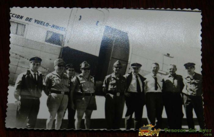 ANTIGUA FOTO POSTAL, SAHARA, RADAR, MILITARES Y PILOTOS AL LADO DE UN AVION EN EL AERODROMO MILITAR, NO CIRCULADA
