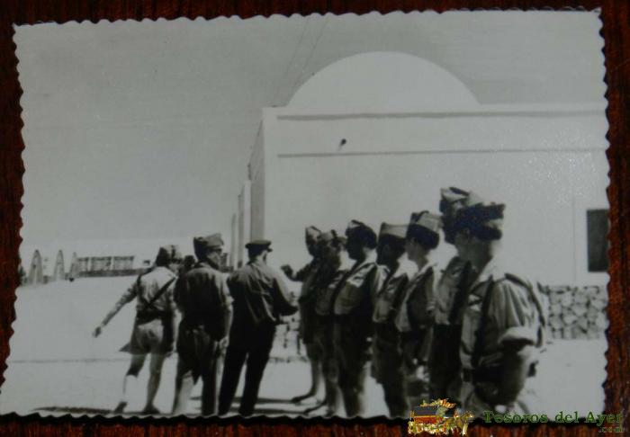 ANTIGUA FOTO POSTAL, SAHARA, LEGIONARIOS ESPAñOLES, SALUDANDO A UN ALTO CARGO, NO CIRCULADA