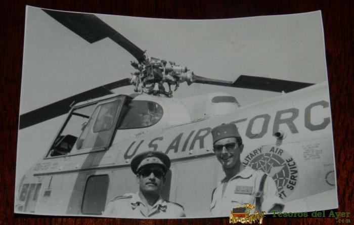 ANTIGUA FOTO POSTAL, SAHARA, DOS MILITARES POSANDO JUNTO HELICOPTERO DE USA AIR FORCE, NO CIRCULADA