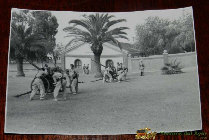 ANTIGUA FOTO POSTAL, SAHARA, LEGIONARIOS ESPAñOLES PREPARANDO ARTILLERIA, NO CIRCULADA