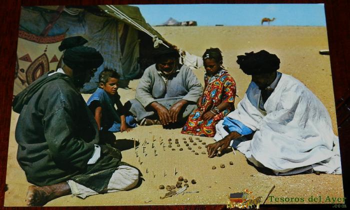 ANTIGUA FOTO POSTAL DE SAHARA, JUEGO EN EL DESIERTO, COLECCION LAS AFORTUNADAS, NO CIRCULADA.
