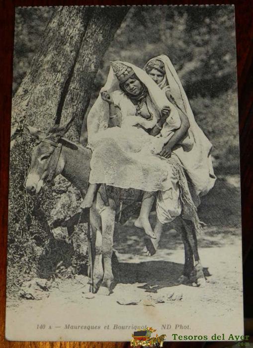 ANTIGUA POSTAL DE ARGELIA, JOVENES ARABES EN BURRO, N. 140 A, ED. N D, NO CIRCULADA.