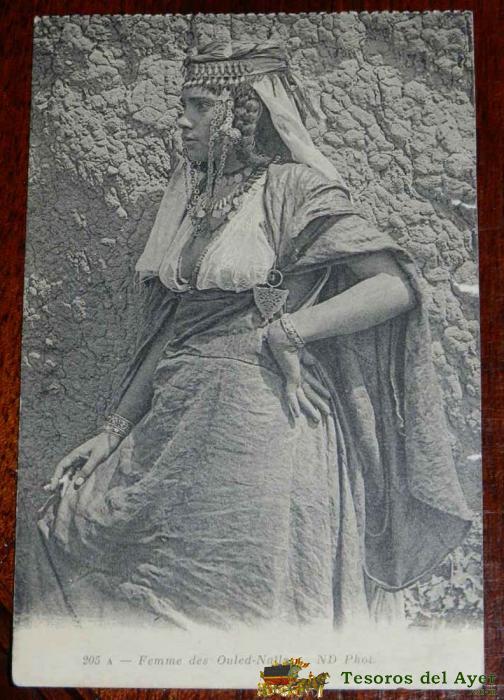 ANTIGUA POSTAL DE ARGELIA, MUJER DES OULED-NAILS, N. 205 A, ED. N D, NO CIRCULADA, TIENE PEQUEñOS DESPERFECTOS EN UN LATERAL.