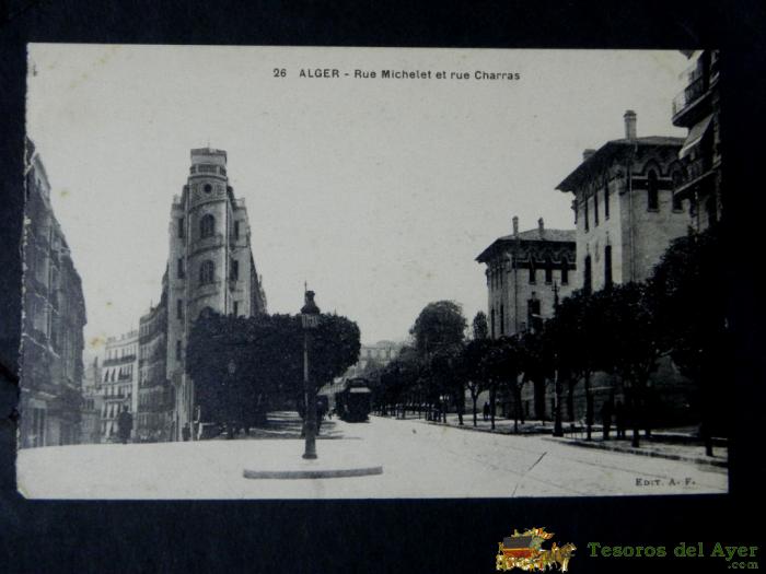 ANTIGUA POSTAL, ALGER, CALLE MICHELET Y CALLE CHARRAS, SIN CIRCULAR
