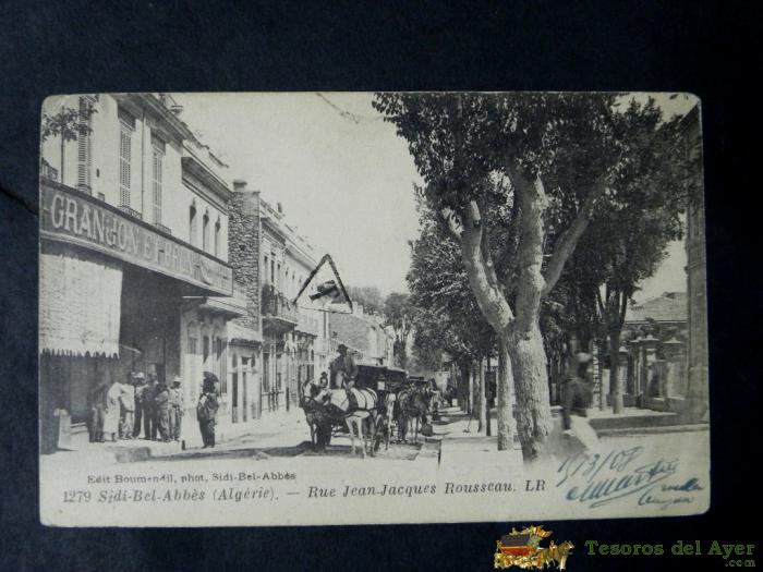 ANTIGUA POSTAL, SIDI BEL ABBES, CALLE JEAN JACQUES ROUSSEAU, CIRCULADA