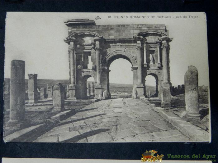 ANTIGUA POSTAL, ALGER, RUINAS ROMANAS DE TIMGAD, ARCO DE TRAJANO, NO CIRCULADA