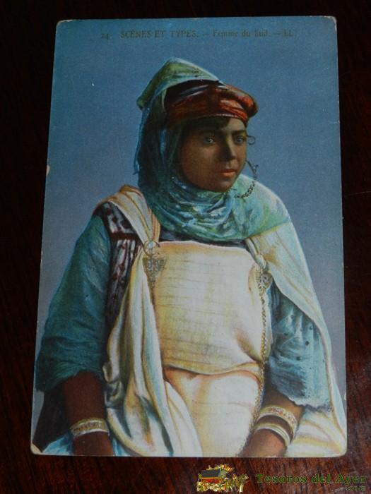 ANTIGUA POSTAL DE SCENES ET TYPES, N. 24, FEMME DEL SUR, CIRCULADA, ED. L.L.