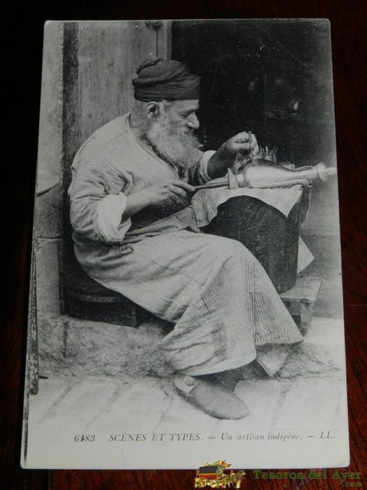 ANTIGUA POSTAL DE SCENES ET TYPES, N. 6183, UN ARTESANO INDIGENA, POSIBLEMENTE ALGERIA, CIRCULADA, ED. L.L.