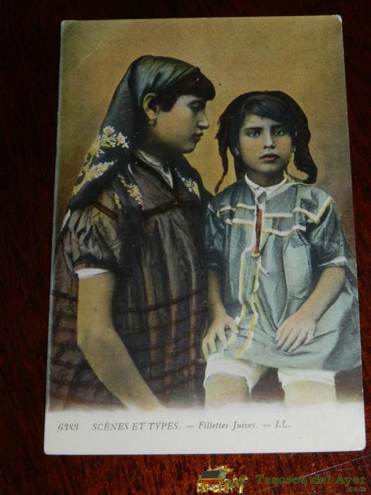 ANTIGUA POSTAL DE SCENES ET TYPES, N. 6383, NIÑAS, POSIBLEMENTE ALGERIA, CIRCULADA, ED. L.L.