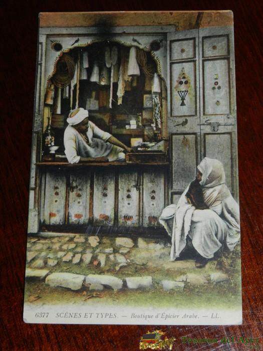 ANTIGUA POSTAL DE SCENES ET TYPES, N. 6377, BOUTIQUE ARABE, POSIBLEMENTE ALGERIA, CIRCULADA, ED. L.L.