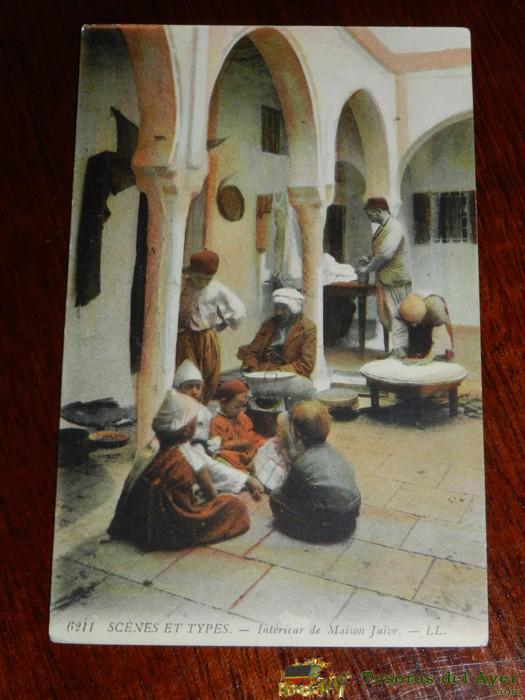 ANTIGUA POSTAL DE SCENES ET TYPES, N. 6211, INTERIOR DE UNA MAISON, POSIBLEMENTE ALGERIA, CIRCULADA, ED. L.L.