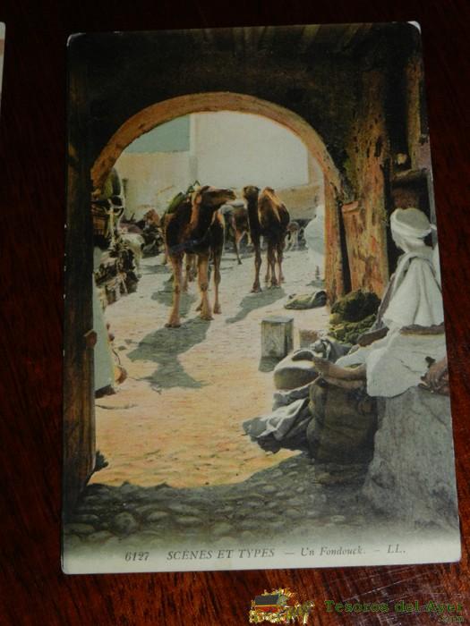 ANTIGUA POSTAL DE SCENES ET TYPES, N. 6127, UN FONDOUCK, POSIBLEMENTE ALGERIA, CIRCULADA, ED. L.L.