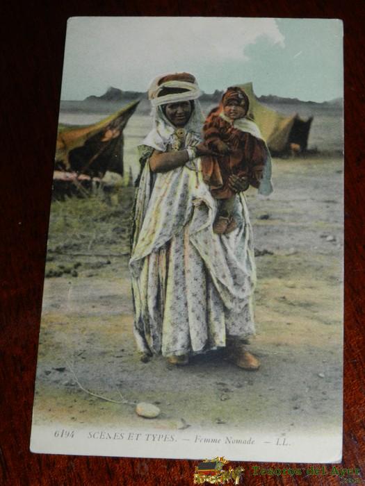 ANTIGUA POSTAL DE SCENES ET TYPES, N. 6194, FEMME NOMADE, POSIBLEMENTE ALGERIA, CIRCULADA, ED. L.L.