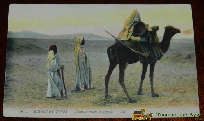ANTIGUA POSTAL DE SCENES ET TYPES, N. 6179, FAMILIA ARABE EN VIAJE, POSIBLEMENTE ALGERIA, CIRCULADA, ED. L.L.