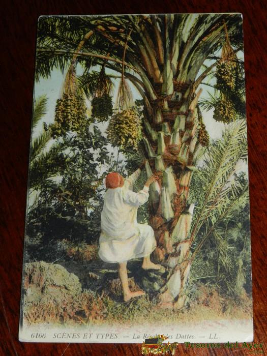 ANTIGUA POSTAL DE SCENES ET TYPES, N. 6166, LA RECOLECTA DE LOS DATILES, POSIBLEMENTE ALGERIA, CIRCULADA, ED. L.L.