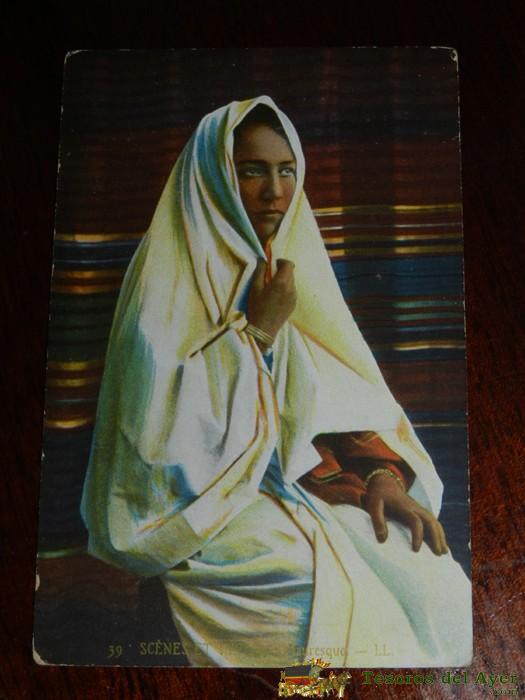 ANTIGUA POSTAL DE SCENES ET TYPES, FEMME ARABE, POSIBLEMENTE ALGERIA, CIRCULADA, ED. L.L.