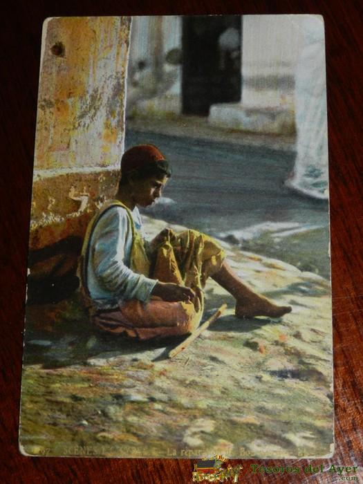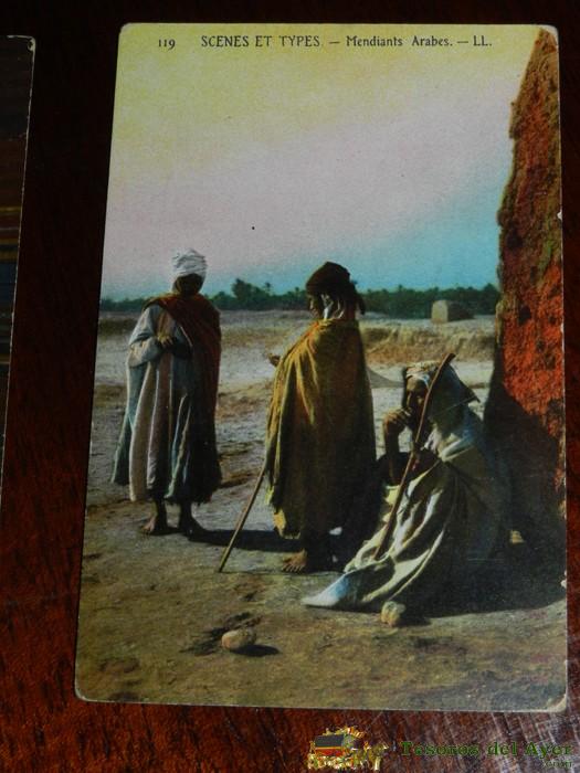 ANTIGUA POSTAL DE SCENES ET TYPES, N. 119, MENDIANT ARABES, POSIBLEMENTE ALGERIA, CIRCULADA Y CON SELLO DE BATALLON DE CAZADORES DE REUS N. 16, ED. L.L.