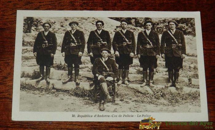 ANTIGUA POSTAL ORIGINAL DE LA REPUBLICA DE ANDORRA, COS DE POLICIA, SIN CIRCULAR.