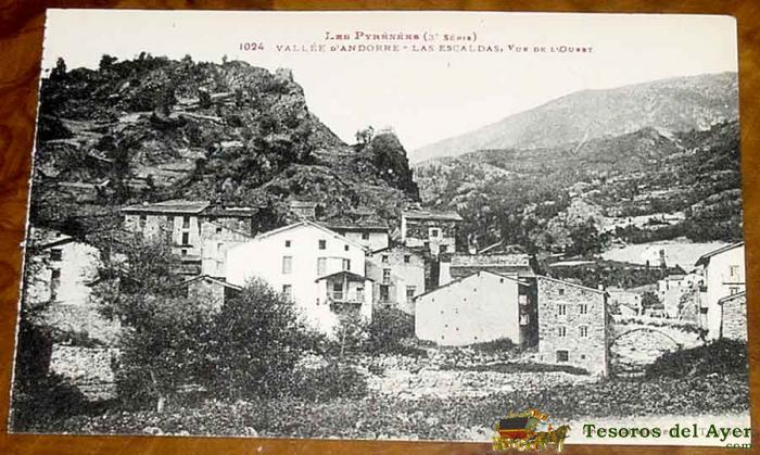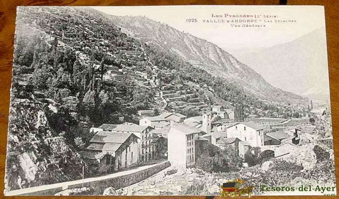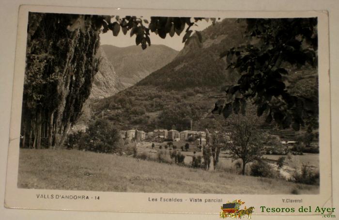 ANTIGUA FOTO POSTAL DE ANDORRA, VALLS D´ANDORRA . LES ESCALDES, VISTA PARCIAL - V. CLAVEROL - ESCRITA