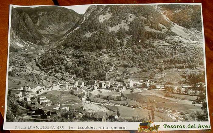 ANTIGUA FOTO POSTLAL DE VALLS D´ANDORRA . LES ESCALDES, VISTA GENERAL . ED. CLAVEROL, CIRCULADA EN 1953