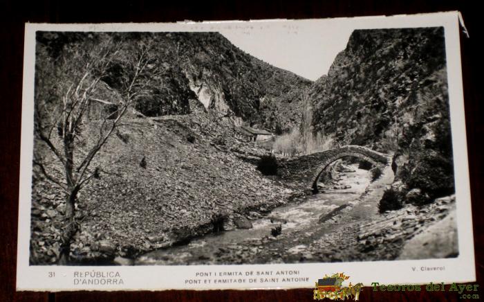 ANTIGUA FOTO POSTAL DE LA REPUBLICA DE ANDORRA - ERMITA DE SAN ANTONI - N. 31 - V. CLAVEROL - NO CIRCULADA.