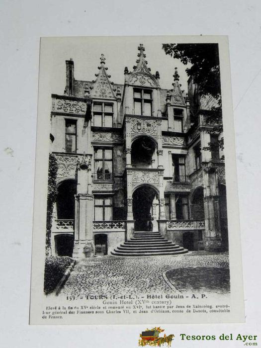 ANTIQUE CARTE POSTALE - FRANCE - TOURS - HOTEL GOUIN - A.P. - 153 - NE CIRCULENT PAS