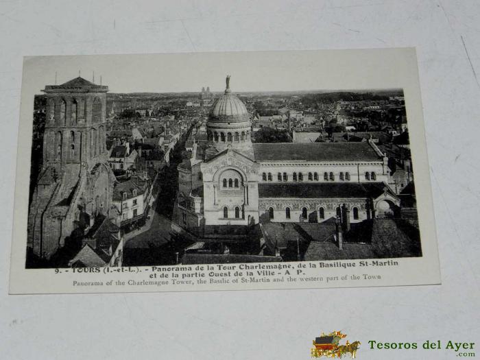 ANTIQUE CARTE POSTALE - FRANCE - TOURS - PANORAMA DE LA TOUR CHARLEMAHNE, DE LA BASILIQUE ST-MARTIN ET DE LA PARTIE OUEST DE LA VILLE - A.P. - 9 - NE CIRCULENT PAS