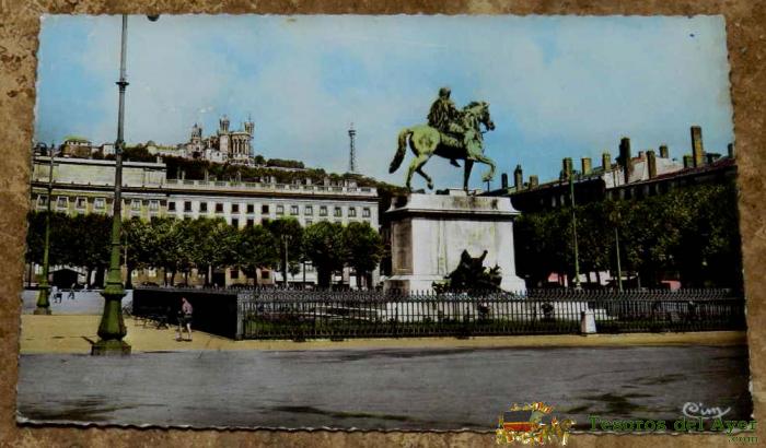 ANTIGUA FOTO POSTAL DE LYON, FRANCIA, PLACE BELLECOUR, CIRCULADA.