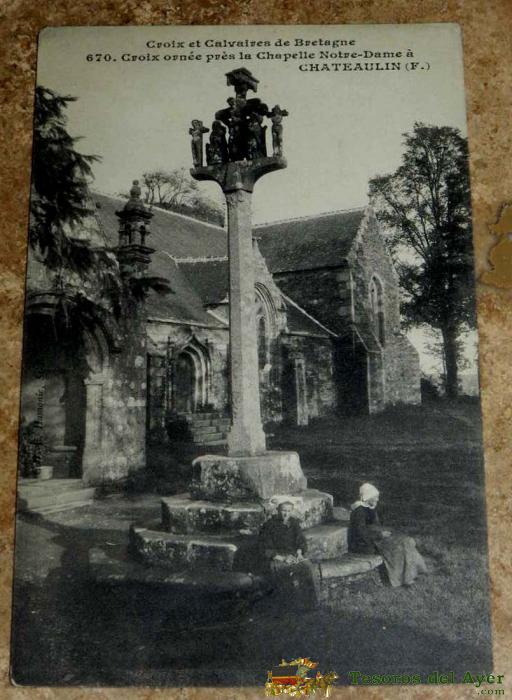 ANTIGUA POSTAL DE CROIX ORNEE PRES LA CHAPELLE NOTRE DAME, CHATEAULIN, NO CIRCUALDA.