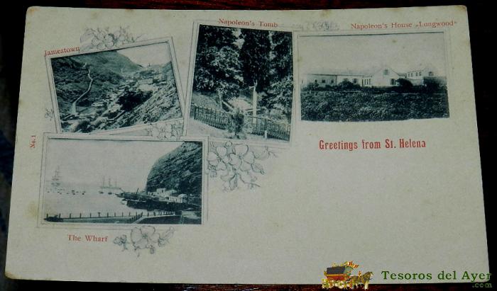 ANTIGUA POSTAL DE SANTA HELENA, COLONIA FRANCESA, N.1, NO CIRCULADA, NAPOLEON HOUSE LONGWOOD, JAMESTOWN.