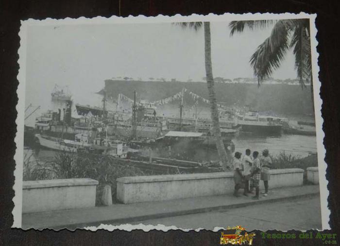 FOTOGRAFIA DEL PUERTO DE SANTA ISABEL DE FERNANDO POO, GUINEA ESPAÑOLA, AÑOS 50, MIDE 8,5 X 6,5 CMS.