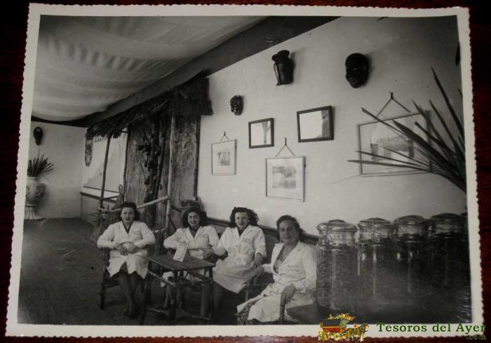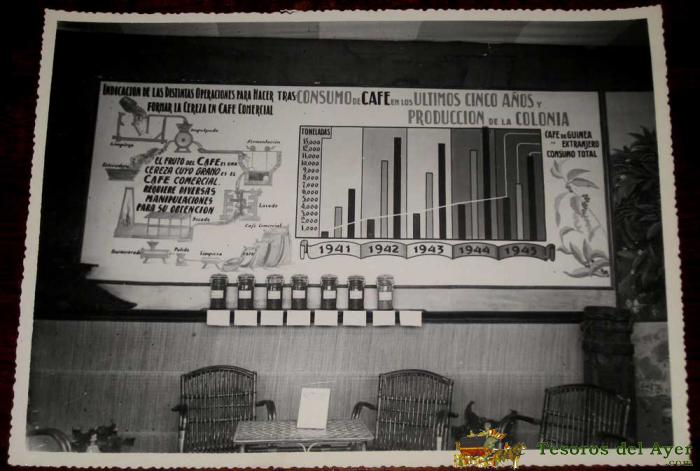 ANTIGUA FOTOGRAFIA GRANDE ORIGINAL DE GUINEA ECUATORIAL . DE LOS PABELLONES DE LA EXPOSICION REALIZADA EN VALENCIA POR LA DIRECCION GENERAL DE MARRUECOS Y COLONIAS, AÑOS 4O - MIDE 23,5 X 17,5 CMS. EN ELLA ESTABAN REPRESENTADAS LAS EMPRESAS DE CAFE, MADERA