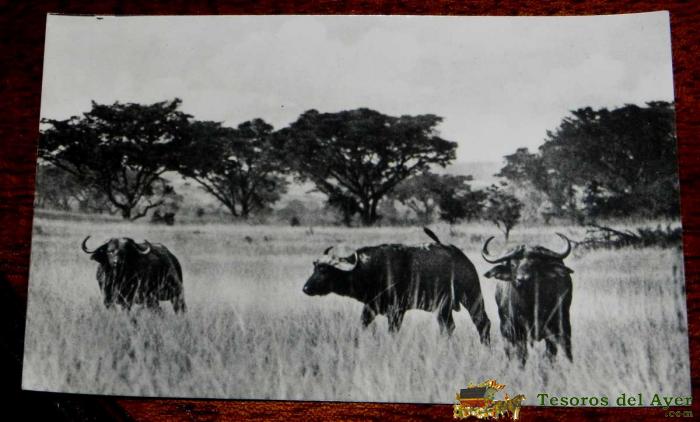 ANTIGUA FOTO POSTAL GUINEA ECUATORIAL ESPAÑOLA - 12. BUFALOS - FOTO CALIFORNIA, BATA - NO CIRCULADA.