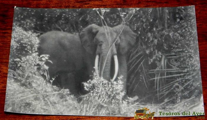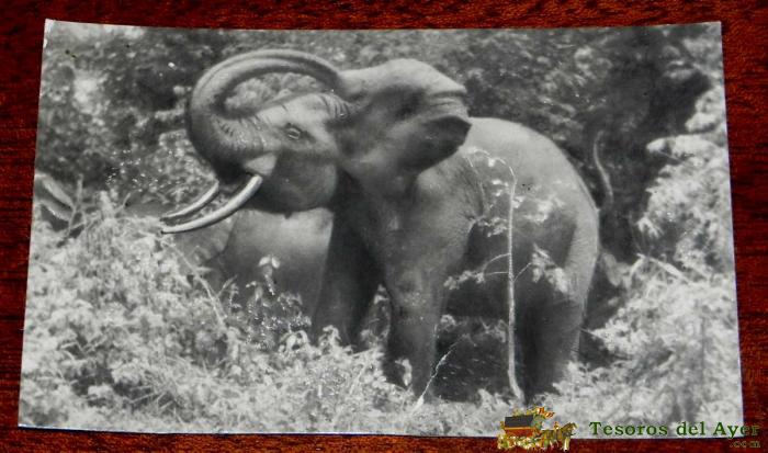 ANTIGUA FOTO POSTAL GUINEA ECUATORIAL ESPAÑOLA - 3. ELEFANTE ENFURECIDO - FOTO CALIFORNIA, BATA - NO CIRCULADA.