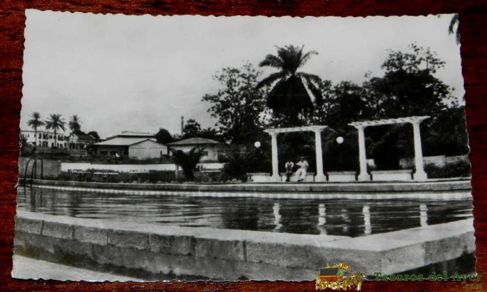 ANTIGUA FOTO POSTAL GUINEA ECUATORIAL ESPAÑOLA - BATA DETALLE DE LA PISCINA - FOTO CALIFORNIA, BATA - NO CIRCULADA.