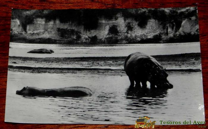 ANTIGUA FOTO POSTAL GUINEA ECUATORIAL ESPAÑOLA - HIPOPOTAMOS N. 19 - FOTO CALIFORNIA, BATA - NO CIRCULADA.